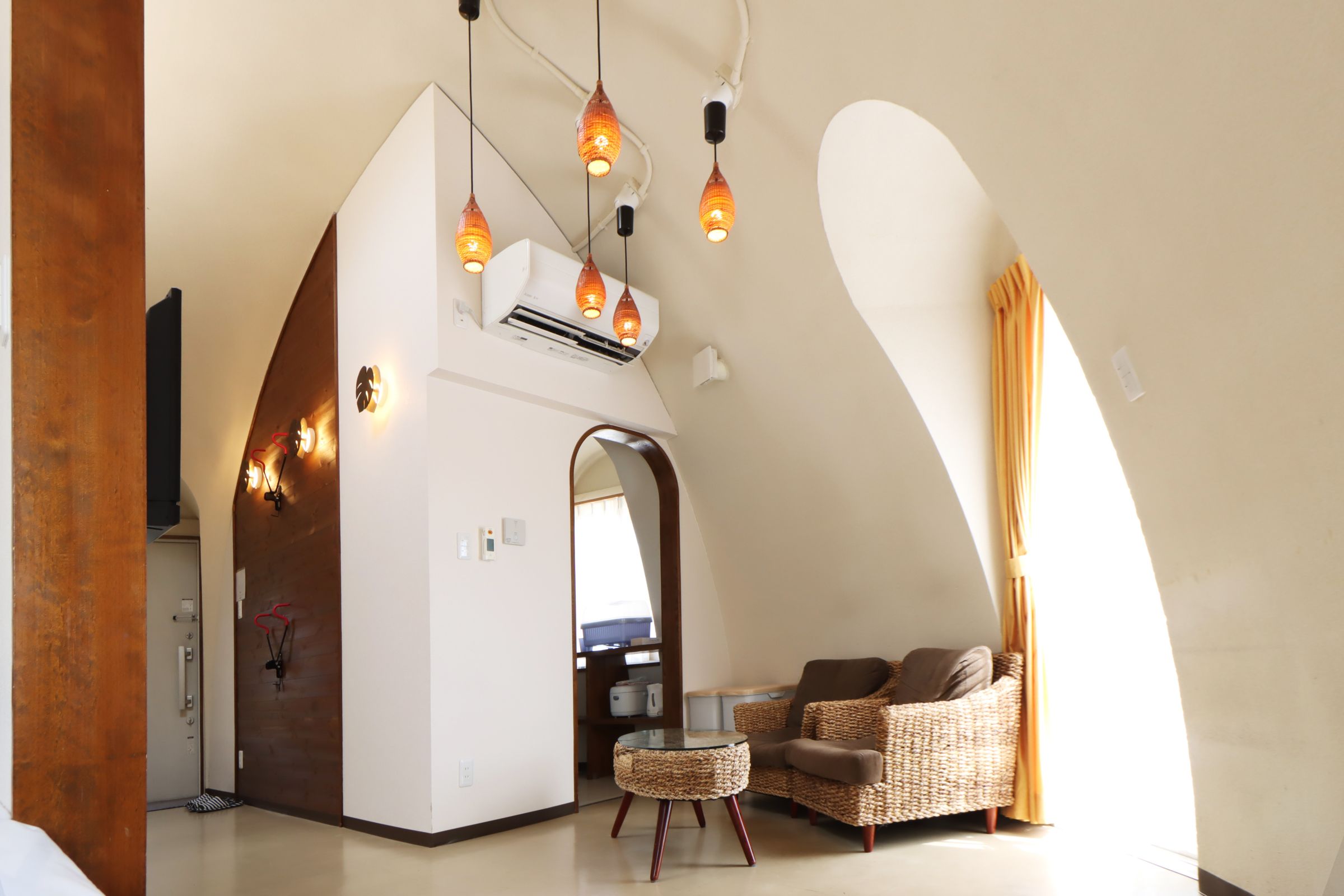 Experience traditional Japanese living in our tatami rooms with comfortable futon bedding. Each room features an en-suite toilet and sink, mini fridge, and ocean views. Shower facilities are just steps away, or bathe in the complimentary natural hot spring bathhouse.