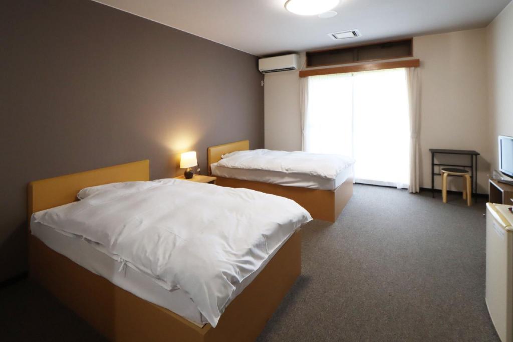 Zen-inspired western-style suites provide peaceful simplicity with two full-size beds, en-suite bathroom, mini fridge, and ocean views, plus complimentary daily access to the natural hot spring bathhouse.